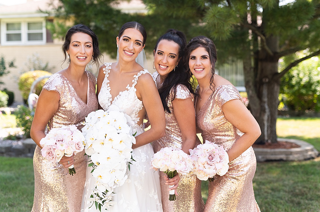 The bridesmaids wore gold bridesmaids dresses for the fall Chicago wedding. Photo by Elizabeth Nord Photography.