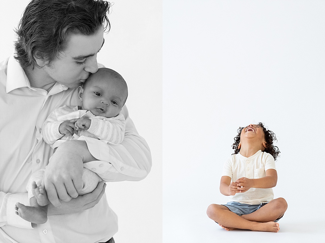 black and white photo on left is of oldest sibling kissing his new adopted brother